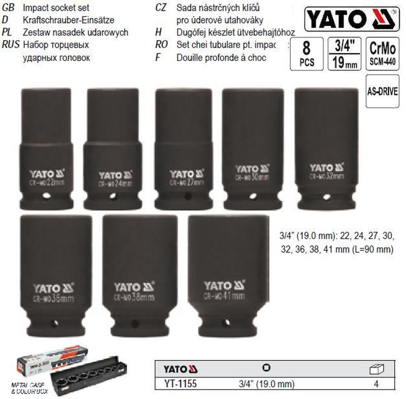 Набор головка торцевая yato польша ударная 3/4" 22-41 l=90 мм 8 штук yt-1155