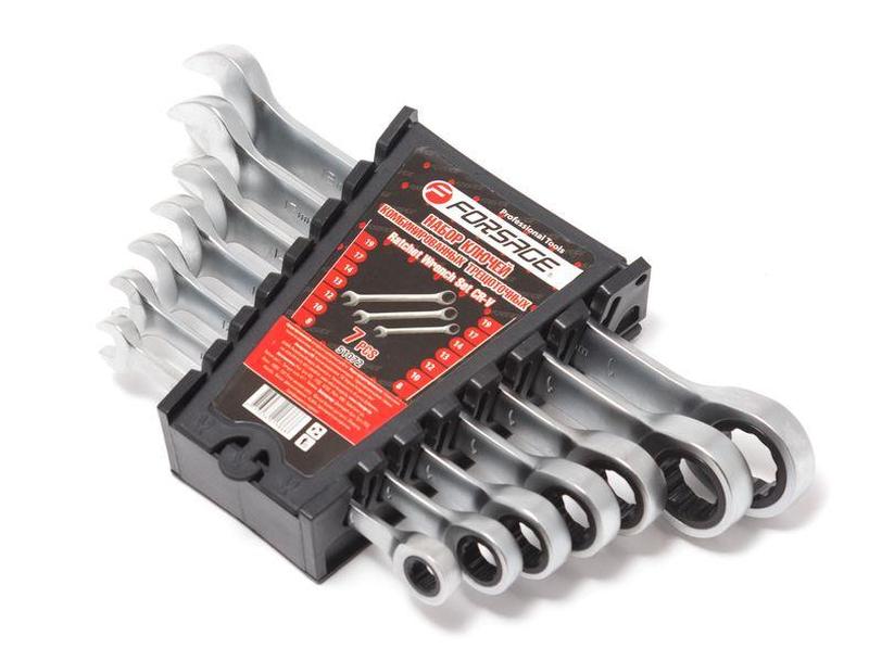 Набор Forsage F-51072 – это универсальный комплект, который станет вашим незаменимым помощником при работе с резьбовым крепежом. В набор входят: 7 комбинированных трещоточных ключей: 8, 10, 12, 13, 14, 17, 19 мм Преимущества: Универсальность: набор подходит для работы с крепежом различного размера.Эффективность: трещоточный механизм обеспечивает быстрое и удобное откручивание/закручивание гаек и болтов.Надежность: ключи изготовлены из высококачественной хромованадиевой стали, что гарантирует их прочность и долговечность.Удобство использования: эргономичная рукоятка обеспечивает удобный хват и снижает нагрузку на руку.Защита от коррозии: хромоникелевое покрытие защищает ключи от ржавчины.Компактность: все инструменты удобно хранить в одном месте. Набор Forsage F-51072 – это отличный выбор для домашнего мастера, автолюбителя и профессионала. Применение: Сборка мебелиРемонт бытовой техникиАвтомобильный ремонтСлесарные и монтажные работыИ многое другое Технические характеристики: Размеры ключей: 8, 10, 12, 13, 14, 17, 19 ммМатериал: сталь Cr-VТип: комбинированный трещоточныйКоличество зубьев: 72Рукоятка: эргономичная