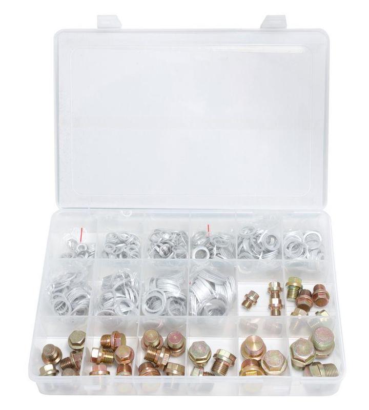 в пластиковом кейсе для хранения объем поставки:винты пробки слива масла: 5x M10 - 5x M12 - 5x M13 - 5x M14 - 5x M15 - 3x M16 - 3x M18 - 3x M20уплотнительные кольца из алюминия: 50x6 мм - 50x8 мм - 50x10 мм - 50x12 мм - 50x13 мм - 50x14 мм - 50x15 мм - 50x16 мм - 50x18 мм - 50x20 мм