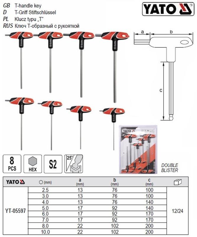 Набор ключ шестигранные hex yato польша ручка 8 штук yt-05597