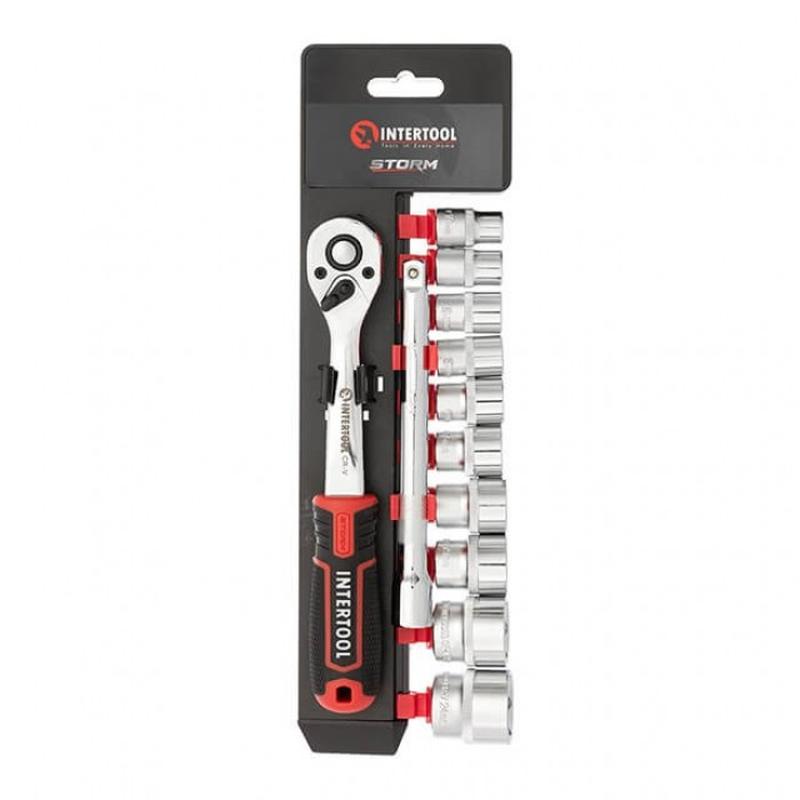 Набор головок 3/8" 10-24 мм, удлинитель, 72 зубца, 12 ед., cr-v storm intertool et-8013 pr...