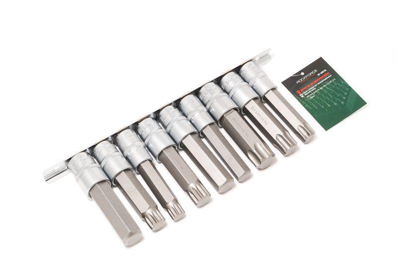 Код товара: 46643, Состав: Набор головок-бит разнопрофильных Spline&Torx;&Hex;, 9 пр.(М14,М16,М18,Т70,Т8**********мм; L-100мм) 1/2", на планке