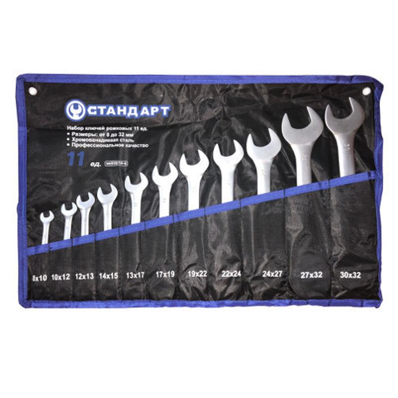 Набір ключів ріжкових 8-32 мм 11 шт. у чохлі СТАНДАРТ-NKR11STA-S — (8-10,10-12,12-13,14-15,13-17,17-19-22, 22-24,24-27-32,30-32)
