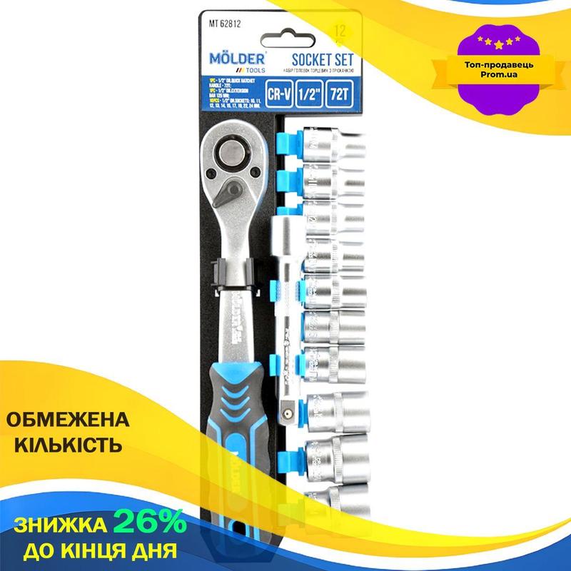 Профессиональный набор торцевых головок с трещоточкой и удлинителем 1/2" 72т cr-v 10-24мм...