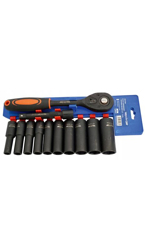Набір adler тріскачка + головки довгі 1/2" - 12 ел.