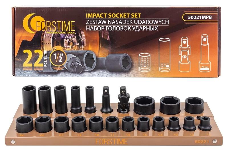 Головки ударные, набор 22пр., 1/2" (6гр.) forstime ft-50221mpb