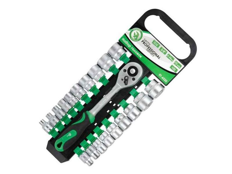 Набор головок торцевых, рукоятка трещалка 3/8 cr-v 20шт et-6020 тм intertool