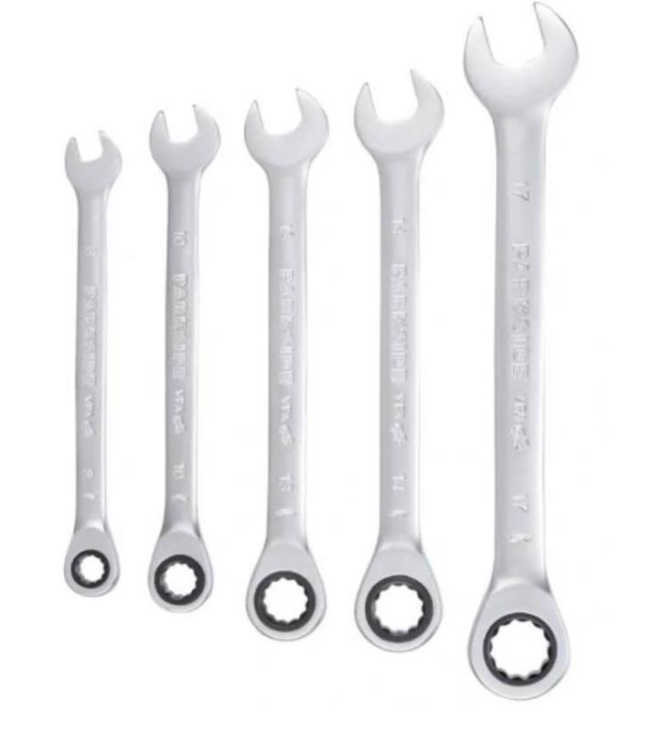Набор накидных ключей с трещоткой PARKSIDE (5 элементов, 8-17 мм) предназначен для удобной и быстрой работы с резьбовыми соединениями. Благодаря встроенной трещотке ключи позволяют работать без постоянного снятия и перестановки инструмента, что значительно экономит время и силы. Изготовленные из высококачественной хром-ванадиевой стали, ключи устойчивы к износу, прочные и долговечные. Универсальный набор пригодится как для профессионального использования, так и для домашнего ремонта или автосервиса.