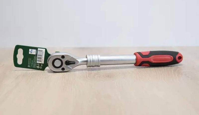 Оригинальная телескопическая трещотка PARKSIDE (Германия) предназначена для удобного затягивания и отпускания гаек и болтов. Благодаря телескопическому выдвижному механизму обеспечивается особенно длинный рычаг (325-465 мм), что значительно облегчает работу с тугими креплениями. Трещотка имеет 72 зуба для плавного хода и возможность переключения вправо/влево. Оснащена быстросъемным механизмом с защитой шарика для надежной фиксации насадок. Изготовлена из прочных материалов: шестерня из стали Cr-Mo, головка из 40CrV, ручка из PP + TPR для комфортного хвата. Вес инструмента -- около 885 г.