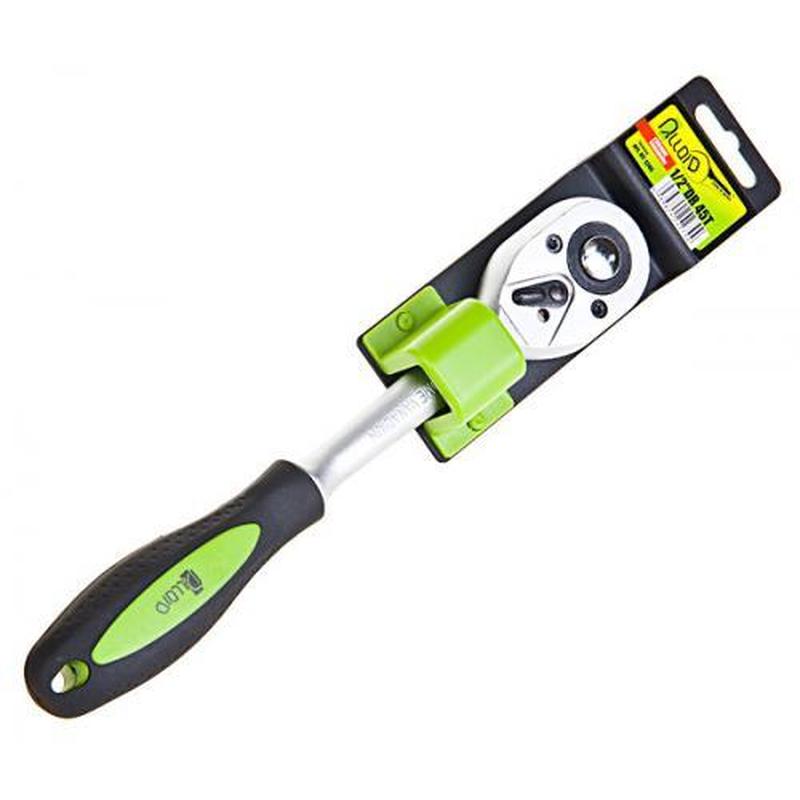 Трещотка Alloid 1/2" 72 зубца (КТ-1272) — это высококачественный инструмент, предназначенный для работы с большими крепежами. Ее 72 зубца обеспечивают плавное и точное вращение, значительно облегчая процесс откручивания или закручивания. Данная модель идеальна для работы с болтами и гайками среднего и крупного размера. Эргономичная рукоятка предотвращает усталость рук, даже при длительном использовании. Этот инструмент является незаменимым помощником как в профессиональной сфере, так и для бытового использования. Преимущества: - 72 зубца — плавное и эффективное вращение с минимальными усилиями. - Высокое качество — изготовлена из прочных и долговечных материалов. - Эргономичная рукоятка — удобная и предотвращающая усталость руки. - Простота в использовании — механизмы с быстрым переключением направления работы. - Широкий спектр применения — подходит для автосервисов, строительства и других сфер. Применение: - Работы с крупными гайками и болтами - Строительные и монтажные работы - Ремонтные работы, автосервис