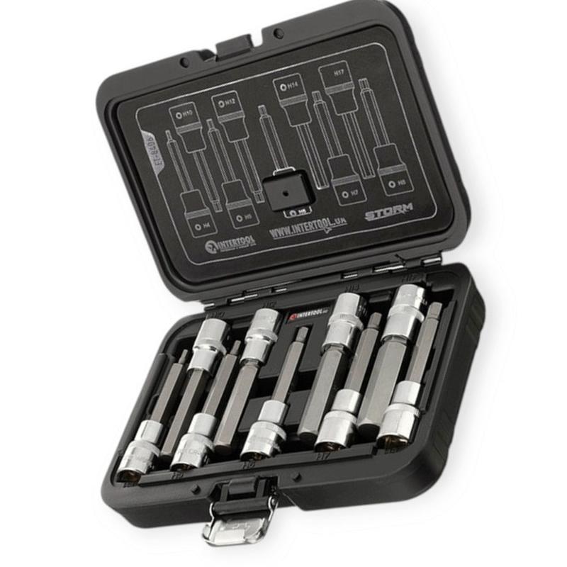 Набор головок - вставок 1/2" 6 граней HEX 9шт 4-17 мм, 100мм, S2 (футляр) Storm INTERTOOL