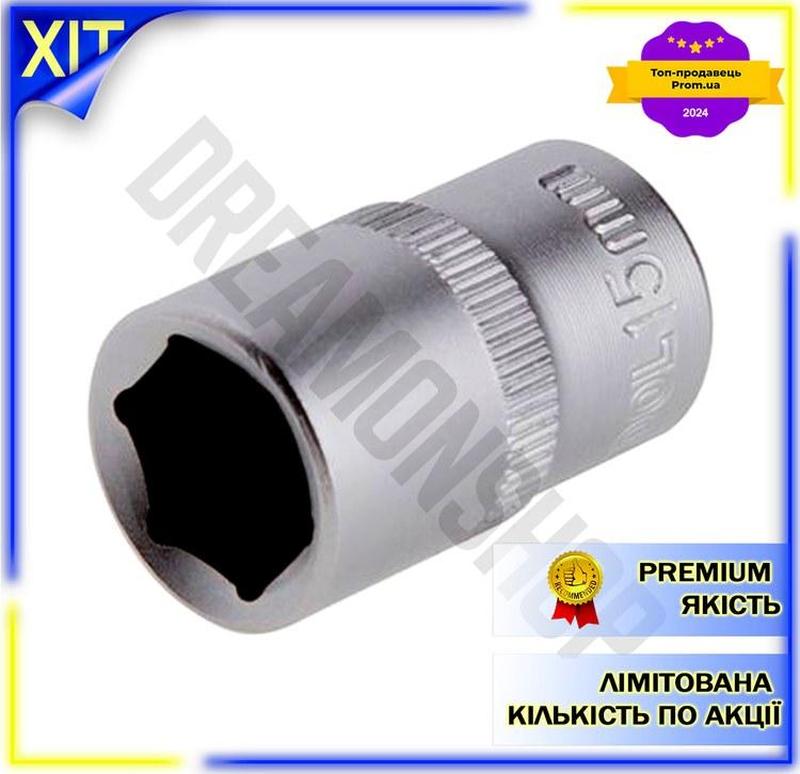 Dm головка шестигранная intertool спецификация 2.2 15мм 1/2 матовая торцевая головка для м...