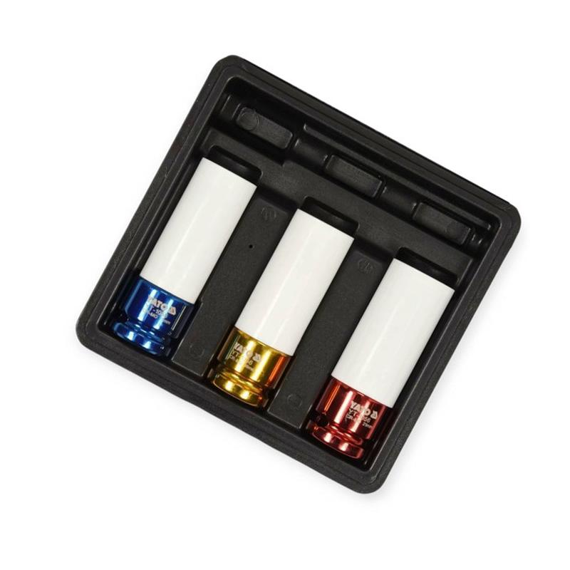Головка торцевая шестигранная ударная удлиненная 1/2" 17,19,21мм защит. втулка под алюм. диск 3шт Yato