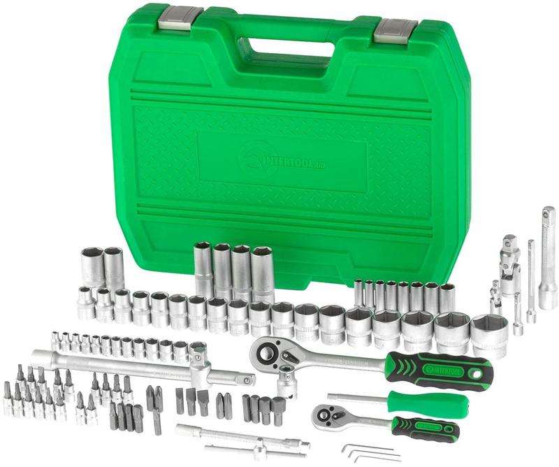 Набір інструментів ключів ріжково-накидних, Набір торцевих ключів головок 94ед, NST Набір для тих, хто бажає придбати інструмент для ремонту по дому або нечастих робіт у гаражі. Придатні для починання меблів, сантехніки та різних приладів. Найголовніша відмінність цієї лінійки від інших — це оптимальна ціна. Інструменти виготовлені з надійної та міцної інструментальної сталі. Застосовувати надмірно великі зусилля до кріплень не рекомендується, тому що набори призначені для не професійних, профілактичних робіт. Інструмент на будь-який випадок Набір містить 94 елементи для виконання будь-якого завдання на відкручування, закручування кріплень. Для різних видів і діаметрів кріплень є цілий арсенал шестигранних торцевих головок від 4 до 32 мм. Наявність карданів і подовжених головок розв'язує питання довгих шпильок і гвинтів. Можна викрутити кріплення в глибоких колодязях двигунів і у важкодоступних місцях, де звичайна головка не зможе впоратися. Т-подібні воротки з плавальною головкою дають додаткові зусилля на прикипілу гайку. У наборі також постачається перехідник під шурупокрут для головок із насадками, бітотримач і різні типи біт (HEX, TORX, PH, PZ, SL) для різних шліц болтів. Свічкові головки з гумовими вставками 16 і 21 мм будуть потрібні для зручного монтажу свічок запалювання. Зручні тріскачки У наборі дві тріскачки з посадковими квадратами 1/2" і 1/4", з реверсом, кнопкою для скидання та фіксації головок. Хроповик на 72 зубці забезпечує м'якість ходу та дає змогу працювати в умовах обмеженого простору. Прогумована двокомпонентна ручка надійно сидить у руці та не вислизає. DIY-серія Найголовніша відмінність цього набору від професійної та STORM серії — це його доступна ціна, матеріал виготовлення інструменту та кейса. Водночас функціонал залишається колишнім! Інструменти виготовлені із загартованої вуглецевої сталі, грані тверді та не стираються під час роботи. Компактне зберігання Кейс набору виробляється з шарнірними петлями та щільними засувками. Інструменти жорстко закріплені в посадкових місцях завдяки ущільненим коміркам — нічого більше не розсипається в роботі або під час ходьби. Компактний, він легко поміщається в багажнику або на стелажі. Комплектація * * * Тріскачкова ручка 1/2" 72 зуби, реверсійна з двокомпонентним покриттям; Головка шестигранная торцевая 1/2" 18 шт.: 10, 11, 12, 13, 14, 15, 16, 17, 18, 19, 20, 21, 22, 23, 24, 27, 30, 32 мм; Головка шестигранна подовжена 1/2" 4 шт.: 14, 15, 17, 19 мм; Головка свічкова 1/2" 2 шт.: 16 мм і 21 мм; Вороток із плавальною головкою 1/2" 250 мм; Кардан 1/2"; Подовжувач 1/2" 2 шт.: 125 мм, 250 мм; Перехідник під біти 1/2". Гнучкий подовжувач 1/4" 150 мм; Тримач 1/4" для головок і біт 150 мм; Перехідник під шурупокрут для головок 1/4" 30 мм. Біти: -HEX 4 шт.: 8, 10, 12, 14 мм; -TORX 4 шт.: T40, T45, T50, T55; -PH 2 шт.: PH3, PH4; -PZ 2 шт.: PZ3, PZ4; -SL 3 шт.: 8, 10, 12 мм. Головка з насадкою HEX 1/4" 4 шт.: 3, 4, 5, 6 мм; Головка з насадкою TORX 1/4" 6 шт.: T8, T10, T15, T20, T25, T30; Головка зі шліцьовою насадкою SL 1/4" 3 шт.: 4, 5.5, 7 мм; Головка з насадкою PH 1/4" 2 шт.: PH1, PH2; Головка з насадкою PZ 1/4" 2 шт.: PZ1, PZ2. Тріскачкова ручка 1/4" 72 зуби, реверсійна з двокомпонентним покриттям; Головка шестигранна торцева 1/4" 13 шт.: 4, 4.5, 5, 5.5, 6, 7, 8, 9, 10, 11, 12, 13, 14 мм; Головка шестигранна подовжена 1/4" 8 шт.: 6, 7, 8, 9, 10, 11, 12, 13 мм; подовжувач 1/4" 2 шт.: 50, 100 мм; Вороток 1/4" з плавальною головкою 110 мм; Кардан 1/4"; Г-подібні шестигранні ключі 3 шт.: 1.5, 2, 2.5 мм.