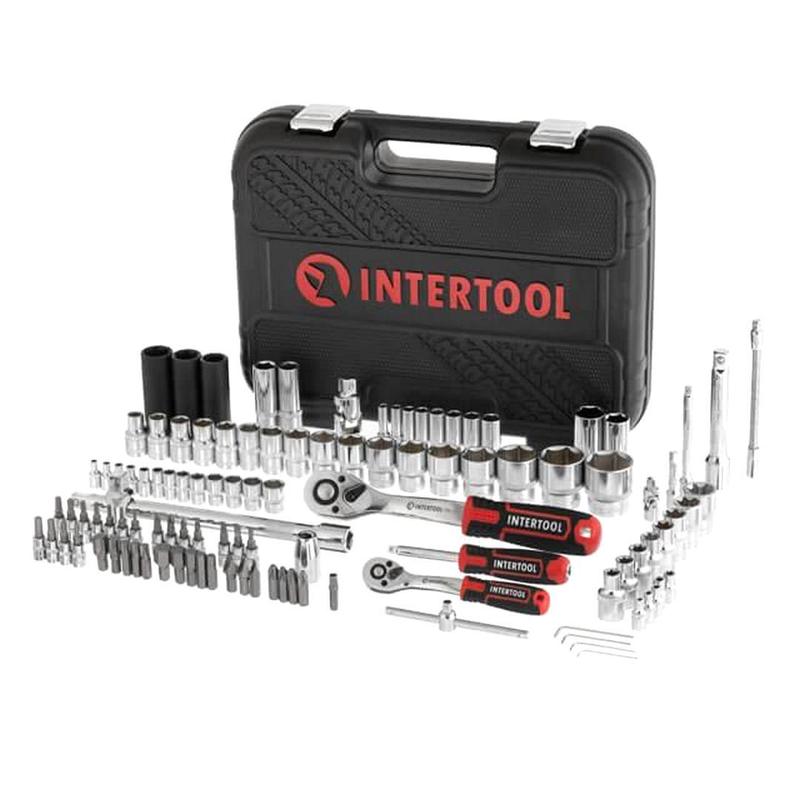 Набор инструмента для авто сто 111ед, Набор ключевых инструментов в чемодане, NST Наборы инструментов INTERTOOL STORM - это новое слово в поддержку качества и многофункциональности! Благодаря своей практичности идеально подходят для автолюбителей и домашних мастеров. Широкий выбор инструментов позволяет справиться почти с любым видом крепежа, что очень выручает при внезапных поломках в дороге и во время ремонтных работ в гараже. Инструмент на все случаи В наборе собраны все необходимые инструменты для комфортной работы с различными узлами автомобиля. Удлинители, карданы, гибкий удлинитель и Г-образные шестигранные ключи позволяют добраться до труднодоступных мест. C таким широким выбором бит и головок (SL, PZ, PH, TORX, HEX) вы готовы справиться почти с любым типом крепежа! В наборе: - 3 удлиненные головки из Сr-Mo стали самых востребованных размеров (17 мм, 19 мм, 21 мм) для работы с ударным гайковертом. - Головки шестигранные захватывают диапазон от 4 до 32 мм и помогают открутить почти любой болт или гайку. - Головки удлиненные шестигранные решают вопрос крепежа расположенного в углублении, 6 - 21 мм. - Головки Е-тип(Torx) подходят для специальных видов болтов и гаек, могут применяться при ремонте двигателя и ходовой автомобиля, E4 - E24. - Свечные головки с улавливателем помогают сменить свечи без особых усилий, 16 мм и 21 мм. Удобные и качественные трещотки В наборе две трещотки на 1/2" и 1/4" с кнопкой для сброса и фиксации головок, а также переключателем направления. Храповой механизм тайваньского производства на 72 зуба обеспечивает мягкость хода и позволяет работать в условиях ограниченного пространства. Небольшой изгиб рукоятки увеличивает комфорт при работе с неудобно расположенными крепежами. Трехкомпонентная прорезиненная ручка улучшает фиксацию инструмента в руке, даже при попадании смазки или мазута. Трещотка хорошо очищается от грязи при помощи ткани. Ударные головки Ключевой особенностью набора стали удлиненные ударные головки из Cr-Mo стали, самых популярных размеров для обслуживания автомобиля (17 мм, 19 мм, 21 мм). Они с легкостью выдерживают высокие нагрузки без деформации и готовы справиться даже с самыми сложными задачами. Разнообразие остальных торцевых головок позволяет выполнять подавляющее большинство задач при ремонте автомобиля. Насечки в месте хвата (по центру головки) предотвращают проскальзывание в руках. Долговечность и износостойкость Все шестигранные головки (помимо трех ударных), воротки, удлинители, трещотки и карданы изготовлены из Cr-V 50BV30 стали, благодаря чему получили оптимальный показатель прочности и долговечности. Двойное никелированное покрытие защищает их от коррозии и окисления. Биты и отверточные насадки изготовлены из Cr-V 6150 стали и отличаются своей прочностью, не слизываются и не гнутся при работе. Противоударный кейс Большое внимание в этом наборе инструментов уделили кейсу для хранения, этому свидетельствует надежность конструкции, прочность металлических замков и петель, а также яркий дизайн. С таким компактным размером (37.5*29.5*8.5 см) для него всегда найдется место в багажнике Вашего автомобиля, а также в мастерской, гараже или в доме. Комплектация * * * Трещоточная рукоятка 1/2", 72 зуба, реверсионная; Головка шестигранная торцевая 1/2", 17 шт.: 10, 11, 12, 13, 14, 15, 16, 17, 18, 19, 20, 21, 22, 24, 27, 30, 32 мм; Головка E-тип (Torx) 1/2", 8 шт.: Е10, Е11, Е12, Е