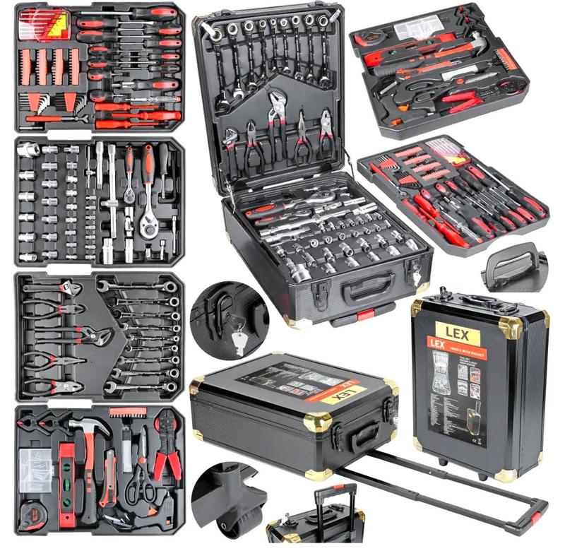 Бытовой набор инструмента, Базовый набор инструментов 186ед LEX (Польша), NST Набор инструментов LEX состоит из 186 единиц с рабочими квадратами 1/2 и 1/4. Набор крайне практичен и надежен в эксплуатации. Насадки и инструменты изготовлены из высокопрочной хром-ванадиумной стали, что обеспечивает высокие эксплуатационные характеристики, а также защиту от коррозии. Благодаря строгому соблюдению технологии производства, весь инструмент характеризуются точностью и отсутствием дефектов. Особенности: - Обширный набор инструментов для дома или мастерской. - Все инструменты набора изготовлены из хром-ванадиевого сплава. - Весь инструмент отличается высокой точностью. - Антикоррозийная обработка инструментов. - Чемодан имеет колеса и телескопическою ручку. - Инструмент изготовлен изготовлен из хром ванадиевой стали. Комплектация: Первый ящик: - ключи рожково накидные с трещоткой: 6; 8; 10; 11; 12; 13; 14; 15; 17 мм; - плоскогубцы; - лягушонок; - ключ шведский разводной; - щипцы; Второй ящик: - торцевые ключи + ручки и удлинители 1/4"; - удлинитель 1/4 (2шт. -50 и 100 мм); - удлинитель 1/2 (1шт. - 120 мм); - универсальный шарнир 1/4 и 1/2; - удлинитель гибкий (гибкая) 150 мм.; - регулятор Т; - трещотка 1/4 и 1/2; - ручка отвертки; - насадки 1/4 (4; 4,5; 5; 5,5; 6; 6,5; 7; 7,5; 8; 9; 10; 11; 12; 13; 14 мм.); - насадки 1/2 (7;8; 9; 10; 11; 12; 13; 14; 15; 16; 17; 18; 19; 20мм.); - наконечники свечей зажигания 16 мм и 21 мм.; Третий ящик: - 3 шт. отвертки для высокого напряжения (1000 в): (-)4 по 100, 6x125, (+)4 по 100; - индикатор напряжения (100 V - 500 V); - 6шт. набор отверток прецизионных (zegarmistrzowskich) - шестигранные ключи: 1,5; 2; 2,5; 3; 4; 5; 6; 8; 10; - удлинитель магнитный; - 11 шт. отверток; Четвертый ящик: - измерение 5 м; - пузырьковый уровень; - щипцы; - молоток; - ножницы; - изоляционная лента; - нож для обоев; - электрический пистолет для клея + 2 картриджи для склеивания; - набор гвоздей и отверток; - универсальный прибор для электрических проводов;
