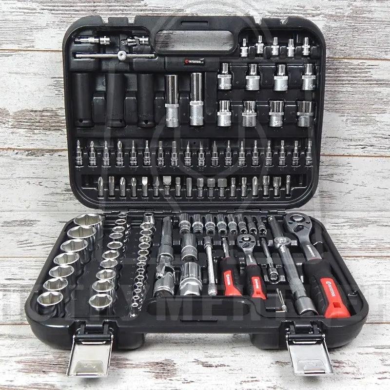 Набор инструментов профессиональный для дома, Универсальный набор ключей для автомобиля в кейсе 111ед, NST Наборы инструментов INTERTOOL STORM - это новое слово в поддержку качества и многофункциональности! Благодаря своей практичности идеально подходят для автолюбителей и домашних мастеров. Широкий выбор инструментов позволяет справиться почти с любым видом крепежа, что очень выручает при внезапных поломках в дороге и во время ремонтных работ в гараже. Инструмент на все случаи В наборе собраны все необходимые инструменты для комфортной работы с различными узлами автомобиля. Удлинители, карданы, гибкий удлинитель и Г-образные шестигранные ключи позволяют добраться до труднодоступных мест. C таким широким выбором бит и головок (SL, PZ, PH, TORX, HEX) вы готовы справиться почти с любым типом крепежа! В наборе: - 3 удлиненные головки из Сr-Mo стали самых востребованных размеров (17 мм, 19 мм, 21 мм) для работы с ударным гайковертом. - Головки шестигранные захватывают диапазон от 4 до 32 мм и помогают открутить почти любой болт или гайку. - Головки удлиненные шестигранные решают вопрос крепежа расположенного в углублении, 6 - 21 мм. - Головки Е-тип(Torx) подходят для специальных видов болтов и гаек, могут применяться при ремонте двигателя и ходовой автомобиля, E4 - E24. - Свечные головки с улавливателем помогают сменить свечи без особых усилий, 16 мм и 21 мм. Удобные и качественные трещотки В наборе две трещотки на 1/2" и 1/4" с кнопкой для сброса и фиксации головок, а также переключателем направления. Храповой механизм тайваньского производства на 72 зуба обеспечивает мягкость хода и позволяет работать в условиях ограниченного пространства. Небольшой изгиб рукоятки увеличивает комфорт при работе с неудобно расположенными крепежами. Трехкомпонентная прорезиненная ручка улучшает фиксацию инструмента в руке, даже при попадании смазки или мазута. Трещотка хорошо очищается от грязи при помощи ткани. Ударные головки Ключевой особенностью набора стали удлиненные ударные головки из Cr-Mo стали, самых популярных размеров для обслуживания автомобиля (17 мм, 19 мм, 21 мм). Они с легкостью выдерживают высокие нагрузки без деформации и готовы справиться даже с самыми сложными задачами. Разнообразие остальных торцевых головок позволяет выполнять подавляющее большинство задач при ремонте автомобиля. Насечки в месте хвата (по центру головки) предотвращают проскальзывание в руках. Долговечность и износостойкость Все шестигранные головки (помимо трех ударных), воротки, удлинители, трещотки и карданы изготовлены из Cr-V 50BV30 стали, благодаря чему получили оптимальный показатель прочности и долговечности. Двойное никелированное покрытие защищает их от коррозии и окисления. Биты и отверточные насадки изготовлены из Cr-V 6150 стали и отличаются своей прочностью, не слизываются и не гнутся при работе. Противоударный кейс Большое внимание в этом наборе инструментов уделили кейсу для хранения, этому свидетельствует надежность конструкции, прочность металлических замков и петель, а также яркий дизайн. С таким компактным размером (37.5*29.5*8.5 см) для него всегда найдется место в багажнике Вашего автомобиля, а также в мастерской, гараже или в доме. Комплектация * * * Трещоточная рукоятка 1/2", 72 зуба, реверсионная; Головка шестигранная торцевая 1/2", 17 шт.: 10, 11, 12, 13, 14, 15, 16, 17, 18, 19, 20, 21, 22, 24, 27, 30, 32 мм; Головка E-