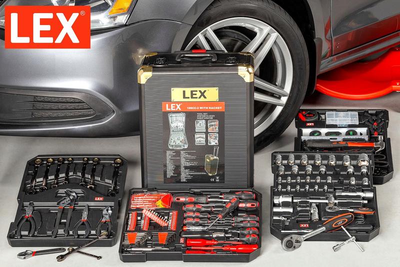 Набор торцевых головок 1/4 186ед LEX (Польша), Автомобильный инструмент головки, NST Набор инструментов LEX состоит из 186 единиц с рабочими квадратами 1/2 и 1/4. Набор крайне практичен и надежен в эксплуатации. Насадки и инструменты изготовлены из высокопрочной хром-ванадиумной стали, что обеспечивает высокие эксплуатационные характеристики, а также защиту от коррозии. Благодаря строгому соблюдению технологии производства, весь инструмент характеризуются точностью и отсутствием дефектов. Особенности: - Обширный набор инструментов для дома или мастерской. - Все инструменты набора изготовлены из хром-ванадиевого сплава. - Весь инструмент отличается высокой точностью. - Антикоррозийная обработка инструментов. - Чемодан имеет колеса и телескопическою ручку. - Инструмент изготовлен изготовлен из хром ванадиевой стали. Комплектация: Первый ящик: - ключи рожково накидные с трещоткой: 6; 8; 10; 11; 12; 13; 14; 15; 17 мм; - плоскогубцы; - лягушонок; - ключ шведский разводной; - щипцы; Второй ящик: - торцевые ключи + ручки и удлинители 1/4"; - удлинитель 1/4 (2шт. -50 и 100 мм); - удлинитель 1/2 (1шт. - 120 мм); - универсальный шарнир 1/4 и 1/2; - удлинитель гибкий (гибкая) 150 мм.; - регулятор Т; - трещотка 1/4 и 1/2; - ручка отвертки; - насадки 1/4 (4; 4,5; 5; 5,5; 6; 6,5; 7; 7,5; 8; 9; 10; 11; 12; 13; 14 мм.); - насадки 1/2 (7;8; 9; 10; 11; 12; 13; 14; 15; 16; 17; 18; 19; 20мм.); - наконечники свечей зажигания 16 мм и 21 мм.; Третий ящик: - 3 шт. отвертки для высокого напряжения (1000 в): (-)4 по 100, 6x125, (+)4 по 100; - индикатор напряжения (100 V - 500 V); - 6шт. набор отверток прецизионных (zegarmistrzowskich) - шестигранные ключи: 1,5; 2; 2,5; 3; 4; 5; 6; 8; 10; - удлинитель магнитный; - 11 шт. отверток; Четвертый ящик: - измерение 5 м; - пузырьковый уровень; - щипцы; - молоток; - ножницы; - изоляционная лента; - нож для обоев; - электрический пистолет для клея + 2 картриджи для склеивания; - набор гвоздей и отверток; - универсальный прибор для электрических проводов;