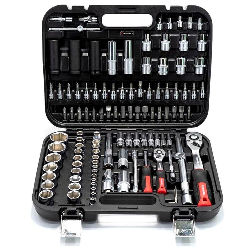 Набор инструментов ключей рожково-накидных, Набор торцевых ключей головок 111ед, NST Наборы инструментов INTERTOOL STORM - это новое слово в поддержку качества и многофункциональности! Благодаря своей практичности идеально подходят для автолюбителей и домашних мастеров. Широкий выбор инструментов позволяет справиться почти с любым видом крепежа, что очень выручает при внезапных поломках в дороге и во время ремонтных работ в гараже. Инструмент на все случаи В наборе собраны все необходимые инструменты для комфортной работы с различными узлами автомобиля. Удлинители, карданы, гибкий удлинитель и Г-образные шестигранные ключи позволяют добраться до труднодоступных мест. C таким широким выбором бит и головок (SL, PZ, PH, TORX, HEX) вы готовы справиться почти с любым типом крепежа! В наборе: - 3 удлиненные головки из Сr-Mo стали самых востребованных размеров (17 мм, 19 мм, 21 мм) для работы с ударным гайковертом. - Головки шестигранные захватывают диапазон от 4 до 32 мм и помогают открутить почти любой болт или гайку. - Головки удлиненные шестигранные решают вопрос крепежа расположенного в углублении, 6 - 21 мм. - Головки Е-тип(Torx) подходят для специальных видов болтов и гаек, могут применяться при ремонте двигателя и ходовой автомобиля, E4 - E24. - Свечные головки с улавливателем помогают сменить свечи без особых усилий, 16 мм и 21 мм. Удобные и качественные трещотки В наборе две трещотки на 1/2" и 1/4" с кнопкой для сброса и фиксации головок, а также переключателем направления. Храповой механизм тайваньского производства на 72 зуба обеспечивает мягкость хода и позволяет работать в условиях ограниченного пространства. Небольшой изгиб рукоятки увеличивает комфорт при работе с неудобно расположенными крепежами. Трехкомпонентная прорезиненная ручка улучшает фиксацию инструмента в руке, даже при попадании смазки или мазута. Трещотка хорошо очищается от грязи при помощи ткани. Ударные головки Ключевой особенностью набора стали удлиненные ударные головки из Cr-Mo стали, самых популярных размеров для обслуживания автомобиля (17 мм, 19 мм, 21 мм). Они с легкостью выдерживают высокие нагрузки без деформации и готовы справиться даже с самыми сложными задачами. Разнообразие остальных торцевых головок позволяет выполнять подавляющее большинство задач при ремонте автомобиля. Насечки в месте хвата (по центру головки) предотвращают проскальзывание в руках. Долговечность и износостойкость Все шестигранные головки (помимо трех ударных), воротки, удлинители, трещотки и карданы изготовлены из Cr-V 50BV30 стали, благодаря чему получили оптимальный показатель прочности и долговечности. Двойное никелированное покрытие защищает их от коррозии и окисления. Биты и отверточные насадки изготовлены из Cr-V 6150 стали и отличаются своей прочностью, не слизываются и не гнутся при работе. Противоударный кейс Большое внимание в этом наборе инструментов уделили кейсу для хранения, этому свидетельствует надежность конструкции, прочность металлических замков и петель, а также яркий дизайн. С таким компактным размером (37.5*29.5*8.5 см) для него всегда найдется место в багажнике Вашего автомобиля, а также в мастерской, гараже или в доме. Комплектация * * * Трещоточная рукоятка 1/2", 72 зуба, реверсионная; Головка шестигранная торцевая 1/2", 17 шт.: 10, 11, 12, 13, 14, 15, 16, 17, 18, 19, 20, 21, 22, 24, 27, 30, 32 мм; Головка E-тип (Torx) 1/2", 8 шт.: Е10, Е11, 