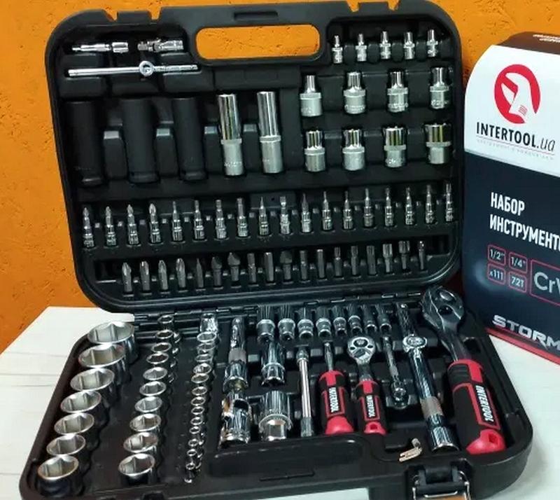 Набір торцевих ключів у машину 111ед, Наборів інструментів для авто, NST Набори інструментів INTERTOOL STORM — це нове слово на підтримку якості та багатофункціональності! Завдяки своїй практичності ідеально підходять для автолюбів і домашніх майстрів. Широкий вибір інструментів дає змогу впоратися майже з будь-яким типом кріплення, що дуже виручає під час раптових поломок у дорозі та під час ремонтних робіт у гаражі. Інструмент на всі випадки У наборі зібрані всі необхідні інструменти для комфортної роботи з різними вузлами автомобіля. Подовжувачі, кардани, гнучкий подовжувач і Г-подібні шестигранні ключі дають змогу дістатися важкодоступних місць. З таким широким вибором біт і головок (SL, PZ, PH, TORX, HEX) ви готові впоратися майже з будь-яким типом кріплення! У наборі: - 3 подовжені головки зі Сr-Mo стали найпопулярнішими розмірами (17 мм, 19 мм, 21 мм) для роботи з ударним гайковертом. - Головки шестигранні захоплюють діапазон від 4 до 32 мм і допомагають відкрутити майже будь-який болт або гайку. - Головки подовжені шестигранні розв'язують питання кріплення, розміщеного в заглибленні, 6-21 мм. - Головки Е-тип (Torx) підходять для спеціальних видів болтів і гайок, можуть застосовуватися під час ремонту двигуна та ходової автомобіля, E4 — E24. - Свічкові головки з вловлювачем допомагають змінити свічки без особливих зусиль, 16 мм і 21 мм. Зручні та якісні тріскачки У наборі дві тріскачки на 1/2" і 1/4" з кнопкою для скидання та фіксації головок, а також перемикачем напрямку. Храповий механізм тайванського виробництва на 72 зуби забезпечує м'якість ходу та дає змогу працювати в умовах обмеженого простору. Невеликий вигин ручки збільшує комфорт під час роботи з незручно розташованими кріпленнями. Трикомпонентна прогумована ручка покращує фіксацію інструмента в руці, навіть у разі потрапляння мастила або мазута. Тріскачка добре очищається від бруду за допомогою тканини. Ударні головки Ключовою особливістю набору стали подовжені ударні головки з Cr-Mo сталі, найпопулярніших розмірів для обслуговування автомобіля (17 мм, 19 мм, 21 мм). Вони з легкістю витримують високі навантаження без деформації та готові впоратися навіть із найскладнішими завданнями. Різноманітність інших торцевих головок дає змогу виконувати переважно важливу більшість завдань під час ремонту автомобіля. Насічки в місці захоплення (по центру головки) запобігають прослизанню в руках. Довговічність і зносостійкість Всі шестигранні головки (крім трьох ударних), воротки, подовжувачі, тріскачки та кардани виготовлені з Cr-V 50BV30 сталі, завдяки чому отримали оптимальний показник міцності та довговічності. Подвійне нікельоване покриття захищає їх від корозії й окиснення. Біти та викруткові насадки виготовлені з Cr-V 6150 сталі та вирізняються своєю міцністю, не злизаються й не гнуться під час роботи. Протиударний кейс Велика увага в цьому наборі інструментів приділили кейсу для зберігання, цьому свідчить надійність конструкції, міцність металевих замків і петель, а також яскравий дизайн. З таким компактним розміром (37.5*29.5*8.5 см) для нього завжди знайдеться місце в багажнику Вашого автомобіля, а також у майстерні, гаражі або в будинку. Комплектація * * * Тріскачкова ручка 1/2", 72 зуби, реверсійна; Головка шестигранная торцевая 1/2", 17 шт.: 10, 11, 12, 13, 14, 15, 16, 17, 18, 19, 20, 21, 22, 24, 27, 30, 32 мм; Головка E-тип (Torx) 1/2", 8 шт.: Е10, Е11, Е12, Е14