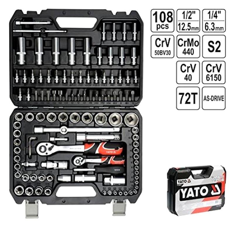 Наборы инструмента головки с трещоткой 108ед yato (польша), набор торцевых головок с трещо...
