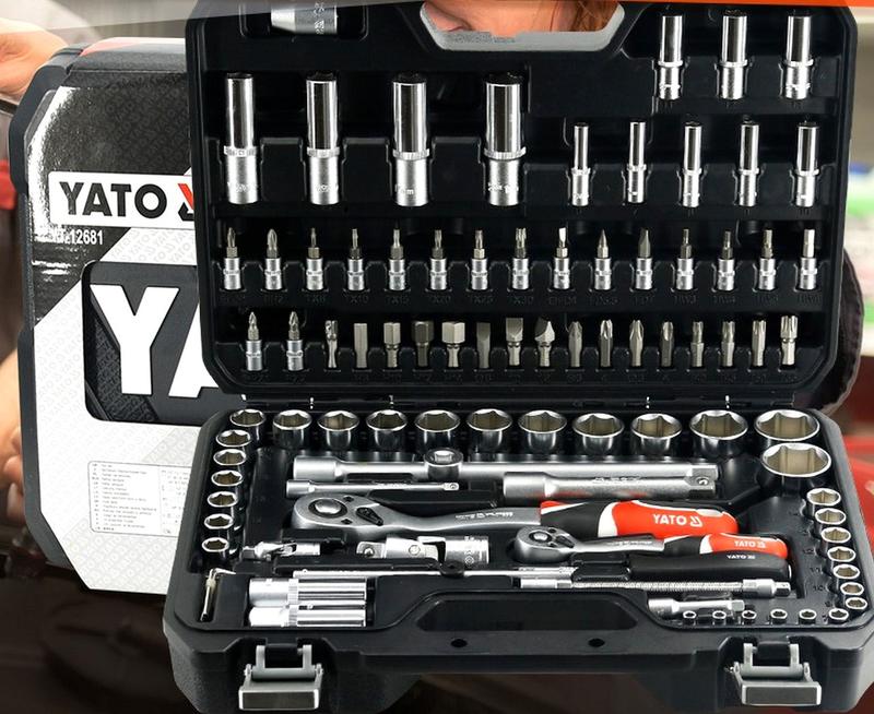 Ріжково накидні ключі з тріскачкою 94ед YATO (Польща), Набір інструментів автомобільний, NST Професійний набір інструментів розроблений для задоволення потреб спеціалізованих автомобільних і механічних служб. Торцеві ключі та торцеві приводи виготовлені з міцної хромо-ванадієвої сталі CrV 50BV3. Ковпачки були виготовлені методом штампування, і перед загартуванням вони були відкалібровані за допомогою точних датчиків і контрольних пристроїв. Комплект дає змогу виконувати роботи, що витримують дуже високе навантаження, виконувати безліч сервісних робіт, пов'язаних із відгвинчуванням і затягуванням нарізних з'єднань різних номінальних розмірів. Комплектація - Насадки 1/2": 10 мм, 11 мм, 12 мм, 13 мм, 14 мм, 15 мм, 16 мм, 17 мм, 18 мм, 19 мм, 20 мм, 21 мм, 22 мм, 23 мм, 24 мм, 24 мм, завдовжки 42 мм. - Головки довгі 1/2": 14 мм, 15 мм, 17 мм, 19 мм, завдовжки 76 мм. - Насадки 1/4": 4 мм, 4.5 мм, 5 мм, 5.5 мм, 6 мм, 7 мм, 8 мм, 9 мм, 10 мм, 11 мм, 12 мм, 13 мм, 14 мм, завдовжки 25 мм. - Головки 1/4" довгі: 6 мм, 7 мм, 8 мм, 9 мм, 10 мм, 11 мм, 12 мм, 13 мм, завдовжки 50 мм. - Трещотка 1/2": 72T. 255 мм. - Трещотка 1/4": 72T, 155 мм. - Вороток ковзний 1/4": 152,4 мм. - Регулятор 1/4”: 150 мм. - Подовжувачі 1/2”: 125 мм і 250 мм. - Подовжувачі 1/4": 50 мм і 100 мм. - Гнучкий подовжувач 1/4": 150 мм. - Свічкові головки 1/2": 16 і 21 мм. - Універсальний шарнір: 1/2" і 1/4". - Перехідник з 3/8" (F) на 1/2" (M): з 1/4" на 1/4". - Ключі шестигранні: 1.5 мм, 2 мм, 2.5 мм. - Адаптер для біт 5/16": з насадкою 1/2". - Біти насадки 1/4": PH1, PH2; -PZ1, PZ2; - Плоский 4, 5.5, 7 мм; - Шестигранні: 3, 4, 5, 6 мм; - Торкс: T8, T10, T15, T20, T25, T30. - Біти насадки 5/16": PH3, PH4; PZ3, PZ4; - Плоский: 8, 10, 12 мм; - Шестигранні: 8, 10, 12, 14 мм; - Торкс: T40, T45, T50, T55. - Отвертка под насадки: 1/4”