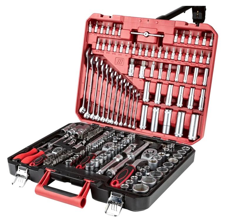 Хороший набор инструментов для дома, Хороший набор инструментов для авто 216ед Parkside (Германия), NST В практичном и устойчивом чемодане. В комплекте: 216 элементов. • Изготовлен из хромованадиевой стали, хромомолибденовой стали и стали S-2 • Легко распознаваемые размеры благодаря лазерной маркировке Весь инструмент привезен из Германии. Абсолютно новый, из магазина, в полном комплекте. Имеет немецкие сертификаты качества TUV. Производство для немецкого рынка. Описание из хромованадиевой стали, хромомолибденовой стали и стали С-2 матовая поверхность - легко узнаваемые размеры благодаря лазерной маркировке четко отсортированные инструменты в практичном и прочном футляре 216 позиций: 39 насадок для шестигранных торцевых ключей 18 вставок для шестигранных торцевых ключей с глубоким профилем 14 вставок для торцового ключа с профилем E 3 трещотки с функцией быстрого освобождения. 3 свечных колодца 4 наклоняемых удлинителя 1 удлинитель наклона с адаптером 1 Т-образная ручка 3 поперечных соединения 12 комбинированных ключей 1 держатель отвертки -- можно использовать как удлинитель 1 держатель отверток с магнитным держателем бит 74 бита 32-битные сокеты 3-битные адаптеры 7 шестигранных ключей Материал сталь, пластик Размеры чемодан: около 44,5 х 37 х 9 см (Д х Ш х В) Вес около 10,9 кг
