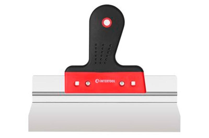Фасадный шпатель предназначен для нанесения и выравнивания шпаклевок, штукатурных растворов и других строительных материалов по поверхности. Шпатель изготовлен из высококачественных материалов. Полотно шпателя из нержавеющей стали, имеет алюминиевую вставку с ребром жесткости, что усиливает конструкцию и позволяет выполнять работы на больших поверхностях. Рукоять из пластика и направляющая из алюминия делают шпатель достаточно легким и удобным в использовании.