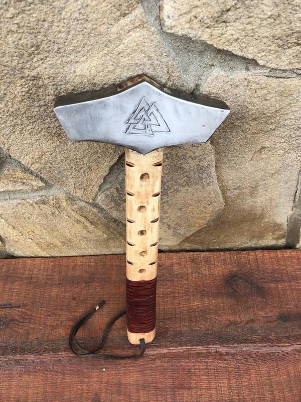 Ищете необычный кованый молоток ручной работы? Вот он! Этот компактный молоток изготовлен вручную из углеродистой стали по традиционным кузнечным методам. Сталь обрабатывается несколько раз, что увеличивает ее плотность и прочность молотка. Молоток может быть не только удобным инструментом, но и милым декоративным предметом для вашего дома. Идеально подходит для столярных и плотницких работ, а также для широкого спектра других задач. Особенности: - Головка молотка имеет приятную текстуру поверхности и легко снимается при необходимости. Для закрепления головки просто ударьте металлической пластиной на верхней части ручки об пол. - Длина молотка: 80 см - Длина головки молотка: 13 см - Рабочая поверхность: 4 см x 4 см - Диаметр ручки: 4 см - Вес нетто: 2,5 кг Этот молоток станет отличным подарком на годовщину свадьбы (6, 11 лет), день рождения, День отца и другие праздники. Это не только функциональный инструмент, но и настоящее произведение искусства и украшение для вашего дома!