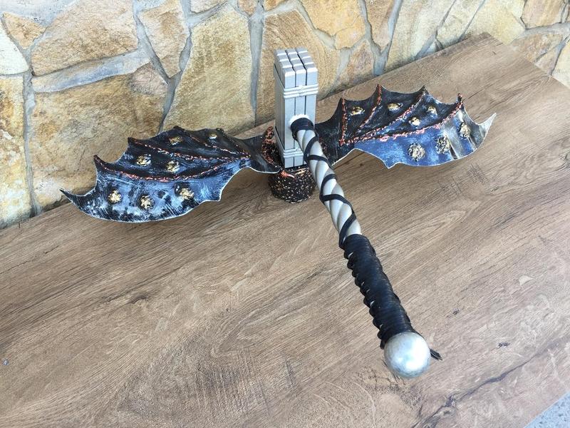 Ищете уникальный кованый молот ручной работы? Вы нашли именно то, что нужно! Этот компактный молоток, выкованный вручную из высококачественной углеродистой стали по традиционным кузнечным методам, станет настоящим произведением искусства в вашем доме. Он создан из 12 квадратных прутьев, сваренных вместе для достижения оригинального дизайна. Ручка также сделана вручную из железа и дополнена держателем в виде крыльев дракона. Молоток предназначен в основном для декоративных целей и станет прекрасным акцентом в вашем интерьере. Размеры: - Длина ручки (вместе с головкой молотка): 42 см - Размер головки молотка: 4,5 см x 15,5 см x 6 см - Вес нетто с подставкой: 3,5 кг - Цвет: серебристый, лакированный Размеры держателя: - Высота: 13 см - Ширина: 16 см - Длина: 69 см - Вес: 1 кг - Цвет: черный с бронзовой, серебряной или медной патиной, лакированный Этот молоток станет отличным подарком на годовщину свадьбы (6 или 11 лет), день рождения, свадьбу, День отца и другие важные события. Это идеальный мужской подарок, который сочетает в себе силу, стиль и мастерство. Крутой молоток для крутого мужчины - лучший выбор!