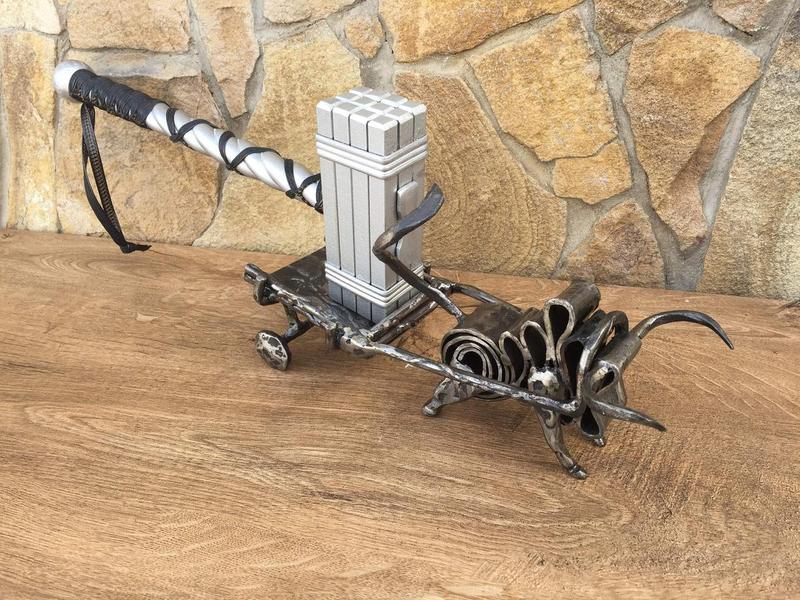 Уникальный кованый молоток ручной работы выполненной в виде быка с тележкой