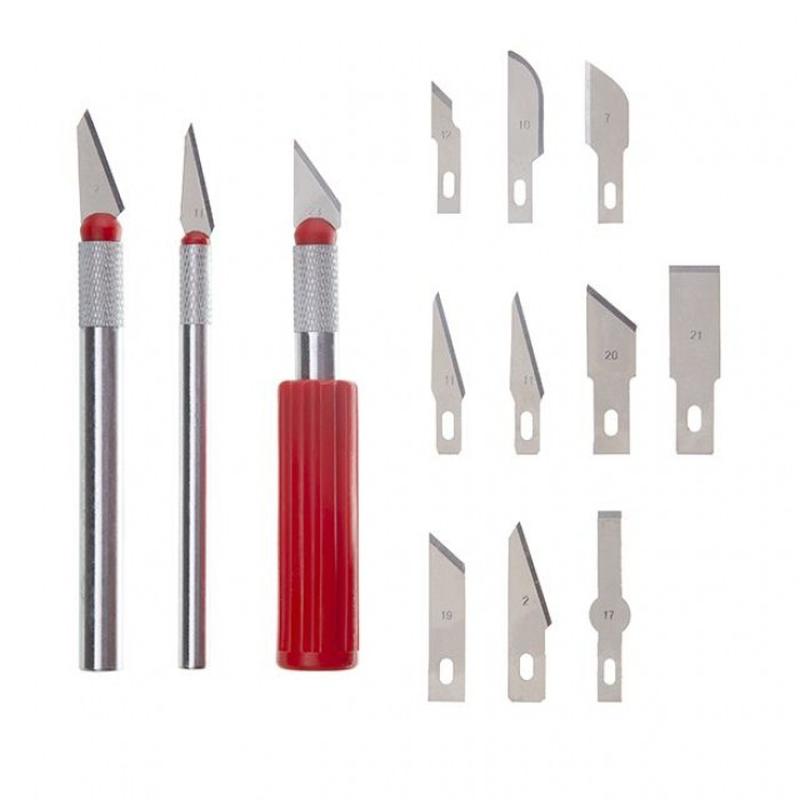 Набор скальпелей INTERTOOL HT-0525 предназначен для фигурной резьбы по дереву. Набор состоит из 13 лезвий-насадок, из высокоуглеродистой стали, различных форм и размеров, обеспечивающих точное оформление резьбы по дереву. Также в комплект входят три держателя с цанговыми патронами для лезвий-насадок и пластиковый футляр для хранения. Комплектация 13 лез Количество лезвий 13 из Вес 0,139 кг