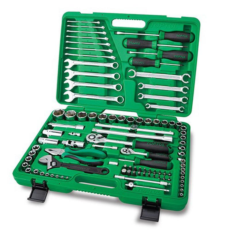 У даний набір включені: 9 торцевих 6 – гранних головок від 4 до 10мм на ¼ дюйма, головки Е-профілю, 20 торцевих 6 – гранних головок від 8 до 32 мм на 1/2 дюйма, 11 комбінованих ключів від 8 до 19 мм, 4 розрізних ключі, викрутки хрестові та шліцьові, а так само, три подовжувача, тримач біт, два кардана, вороток, вороток викрутка, гнучкий подовжувач і насадки: HEX і TORX. Всі розміри інструменту в наборі – метричні. Приєднувальний квадрат ¼ та ½ дюйма. Набір інструменту Toptul - це незамінний інструмент для робіт будь-яких складнощів, який завжди повинен бути під рукою. Це універсальний набір, який стане ідеальним помічником , як для професіонала, так і для любителя. Також є можливість придбання БУДЬ-якого інструменту з набору TOPTUL GCAI9601 окремо. На всі торцеві головки і ключі TOPTUL з набору надається довічна гарантія на заводський брак!