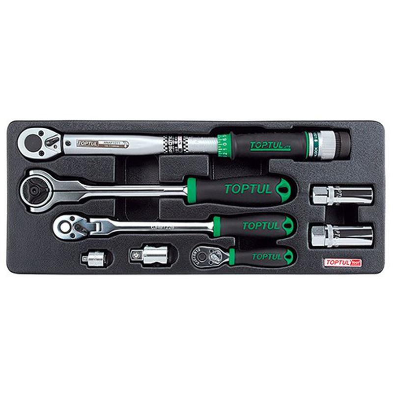 Набор инструмента комбинированного TOPTUL GCAT0803 8 ед. (ложементе). Все наборы инструментов TOPTUL высокого качества в настоящее время разработаны с 2 взаимозаменяемыми размерами вкладышей (A и B), что позволяет пользователям легко комбинировать и сочетать наиболее подходящий и необходимый инструмент в каждом ящике.