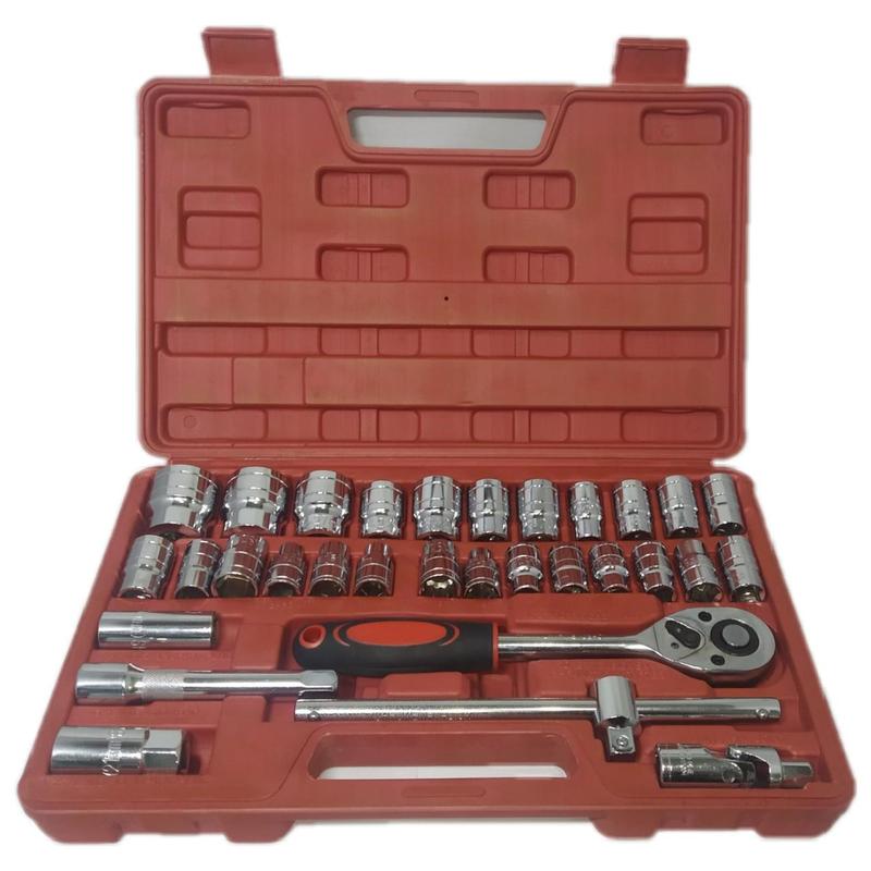 Набор инструментов на 32 предмета (головки, ключи, воротки, отвертки) - это универсальный набор, который предназначеный для проведения разнообразних ремонтных работ. Преимущества: - Многофункциональность - Компактность - Имеет пластиковый бокс, который обеспечивает сохранность каждого предмета - Легко транспортировать Состав набора: - 19-1/2" Dr. Sockets:8,9,10,11,12,13,14,15,16, - 17,18,19,20,21,22,24,27,30,32mm - 6-1/2" Dr. (12PT)Sockets: 10,12,14,15,17,19mm - 2-1/2" Dr. Ext Bar:5" 10" - 2-1/2" Dr.Spark Plug:16,21mm - 1-1/2" Dr.Universal Joint - 1-1/2" Dr. Sliding T Head - 1-1/2" Dr.Ratchet Handle