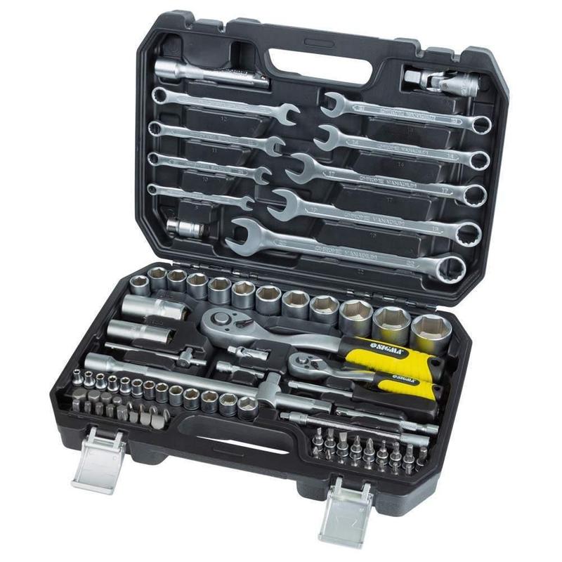 Набір насадок торцевих і біт 1/4", 1/2" 82шт CrV mid SIGMA (6001551) Набір насадок торцевих і біт 1/4 ", 1/2" 82шт CrV mid SIGMA (6001551) призначений для роботи з різьбовими з'єднаннями при ремонті і обслуговуванні автомобілів. Інструменти виготовлені з хромванадієва стали і мають матове покриття. Поставляються в ударопрочном, пластмасовому кейсі. Набір - прекрасний помічник для ремонтних і столярно-слюсарні роботи. Такий набір ідеально підходить як для професійного, так і для побутового використання. Артикул: 6001551 Торгова марка: Sigma Матеріал: Хромванадієва сталь Квадрат, "(дюйм): 1/4, 1/2 Кількість, од: 82 Базова одиниця: шт Кількість в наборі, шт: 82 Матеріал кейсу: пластик Мінімальна партія замовлення, шт: 1 Офіційна гарантія: Від виробника Розміри кейсу, мм: 380 × 285 × 75