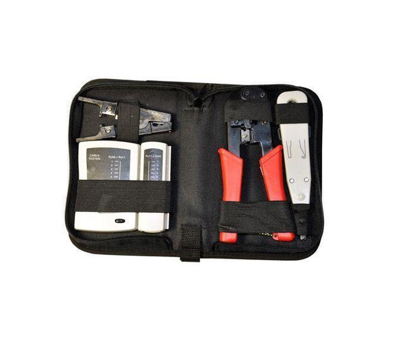 Зручний набір інструментів для витої пари, що поєднує в собі все необхідне для роботи з кабелем. А саме, інструменти для закладення телефонних плінтів, обтискача RJ-45, зачистки і тестер витої пари. Комплектація: Інструмент профі для закладення телефонних плінтів KRONE з рег / сили, гачками (WT - 4002) Інструмент для обтискача RJ-45 (8P8C) & RJ-12 (6P6C) (WT - 4014B) Універсальний інструмент для зачистки та обрізки кабелю витої пари (WT - 4009) Тестер кабельний електронний RJ-45, RJ-12, чорного кольору (WT - 4031A)