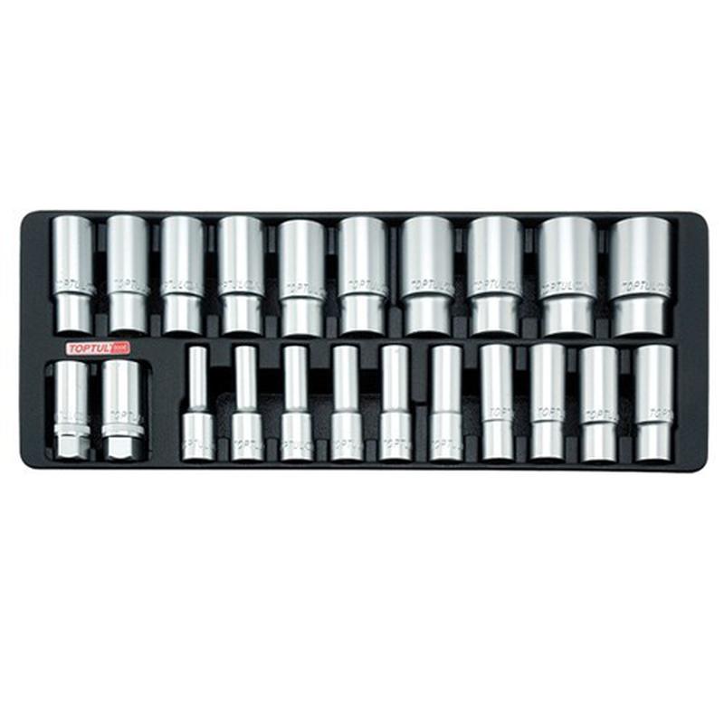 Набор головок длинных 1/2 8-32 мм 22 ед. (в ложементе) TOPTUL GAAT2202. Все наборы инструментов TOPTUL высокого качества в настоящее время разработаны с 2 взаимозаменяемыми размерами вкладышей (A и B), что позволяет пользователям легко комбинировать и сочетать наиболее подходящий и необходимый инструмент в каждом ящике.