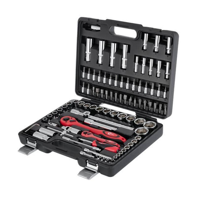ТЕХНІЧНІ ХАРАКТЕРИСТИКИ ТА ДОКУМЕНТАЦІЯ ET-6094 Тріскачка 1/2", 1/4" 72 зуба Головки шестигранні, подовжені, свічкові, головки з насадками Розмір головок 4-32 мм Біти TORX, HEX, PH, PZ, SL Матеріал виготовлення Cr-V сталь Кількість одиниць в наборі 94 од. Матеріал кейса пластик Габаритні розміри 370*260*80 мм Гарантія довічна Країна-виробник Тайвань Вага 6,125 кг Об'єм 0,008550 куб.м ОПИС Набір з професійної лінійки має високий клас якості інструментів, що дозволяє впоратися з найскладнішими та найважчими роботами. Використовується в автомайстернях, на СТО, а також стане чудовим помічником на довгі роки домашньому майстру в побуті, гаражі тощо. Інструмент на будь-який випадок Набір підібраний таким чином, що підійде як професійному автомайстру для роботи в шиномонтажі, так і господарю, який робить все своїми руками. Різноманітність торцевих головок у наборі дозволяє виконувати переважну більшість завдань для ремонту автомобіля, а також техніки. До комплектації увійшли торцеві шестигранні головки від 4 до 32 мм, дозволяють відкручувати кріплення різних діаметрів, вони туго сидять на посадкових місцях та не спадають. Воротки, подовжувачі, високі головки і кардани потрібні для відкручування гайок, болтів та шпильок у глибоких колодязях двигунів або в місцях, де складно їх дістати. До набору додано також гнучкий подовжувач - відкручує кріплення без демонтажу додаткових деталей у важкодоступних місцях. Різноманітність біт (SL, PZ, PH, TORX, HEX) та головок з насадками стануть у пригоді для роботи з різними видами шліців, які використовують у меблевій промисловості, будівництві, машинобудуванні та приладобудуванні. Зручні та надійні тріскачки Механізм тріскачок має плавний хід у 72 зубці, вирізняється високою точністю та зносостійкістю. Швидке скидання головок та наявність реверсу спростять й прискорять роботу майстра. Вигнута форма ручки для зручної роботи у важкодоступних місцях. Головки надійно фіксуються на посадкових квадратах тріскачок, не спадають і щільно прилягають до поверхні кріплення. Тріскачки повністю вкриті захисним шаром поліпропілену з гумовою накладкою в місці хвату для кращої фіксації в руці, не ковзають та не випадають під час роботи. Довговічність та зносостійкість Всі інструменти виготовлені зі зносостійкої та витривалої Cr-V сталі. Мають високий ресурс роботи, прослужать максимально довгий термін, на відміну від подібних аналогів. Набір зроблений у Тайвані з суворим дотриманням усіх технічних вимог. Ми гарантуємо якість інструменту, яку підтверджує довічна гарантія. Зручне зберігання Кейс виготовлено з міцного пластику з металевими замками. Всі інструменти щільно зафіксовані у своїх посадкових місцях, а наявність поролонового прошарку не дозволяє висипатися набору при транспортуванні. Комплектація * * * Тріскачка 1/2" 72 зуби, реверсивна; Головка шестигранна торцева 1/2" 18 од.: 10, 11, 12, 13, 14, 15, 16, 17, 18, 19, 20, 21, 22, 23, 24, 27, 30, 32 мм; Головка шестигранна подовжена 1/2" 4 од.: 14, 15, 17, 19 мм; Головка свічкова 1/2" 2 од.: 16 мм, 21 мм; Вороток з плаваючою головкою 1/2" 250 мм; Кардан 1/2"; Подовжувач 1/2" 2 од.: 125 мм, 250 мм; Перехідник для біт 1/2". Гнучкий подовжувач 1/4" 150 мм; Тримач 1/4" для головок та біт 150 мм; Перехідник на шурупокрут для головок 1/4" 30 мм. Біти: - HEX 4 од.: 8, 10, 12, 14 мм; - TORX 4 од.: T40, T45, T50, T55; - PH 2 од.: PH3, PH4; - PZ 2 од.: PZ3, PZ4; - SL 3 од.: 8, 10, 12 мм. Головка з насадкою HEX 1/4" 4 од.: 3, 4, 5, 6 мм; Головка з н