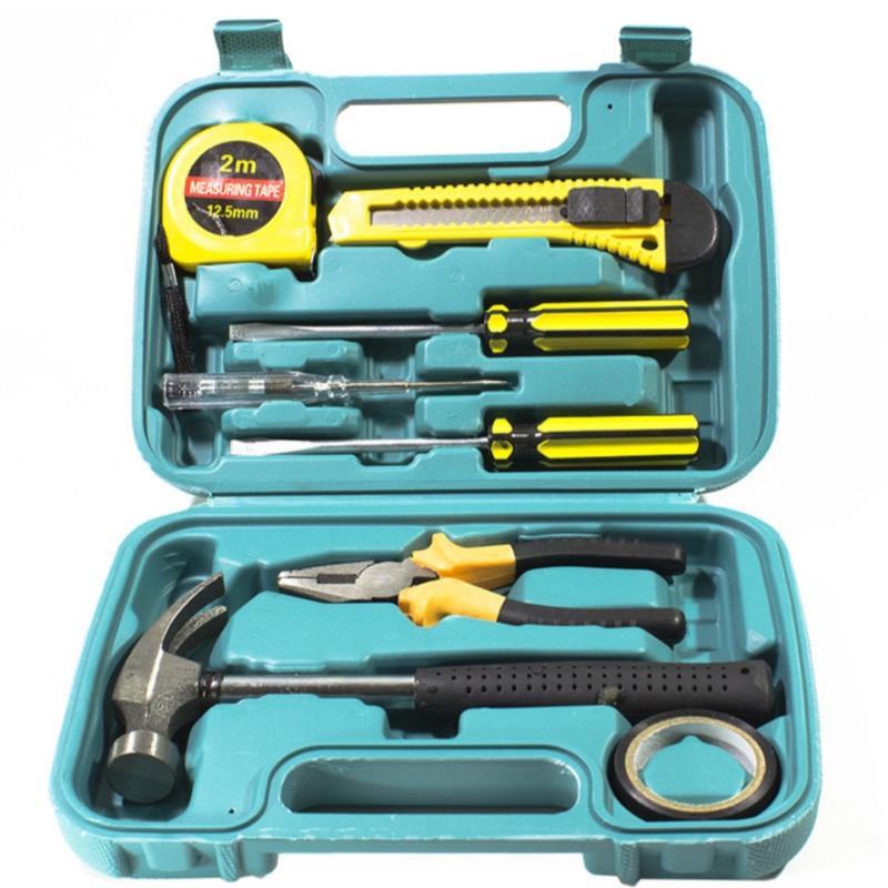 Данный набор поставляется в кейсе, что делает хранение и транспортировку инструментов удобной и функциональной. В набор входит: Молоток. Пассатижи. Отвертка 2шт (шлица и крест). Рулетка 2 метри. Пробник. Нож канцелярский. Изолента 5 метров. Кейс пластиковый.