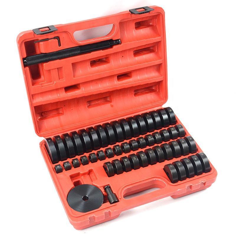 Набор инструментов для монтажа REWOLT (T2037) Набор для монтажа / демонтажа подшипников, металлорезиновых втулок (сайлентблоков) и пальцев отлично подходит в качестве переходников к гидравлическим прессам при выдавливании подшипников, втулок и пальцев, и т.д. В комплект входит: - Переходники 49 шт. - Переходники от 18 мм до 65 мм с шагом 1мм, толщина 12 мм. - Переходник – удлинитель оправки длиной 45 мм. - Оправка, длина 225 мм. - Шестигранный ключ - Пластиковый кейс