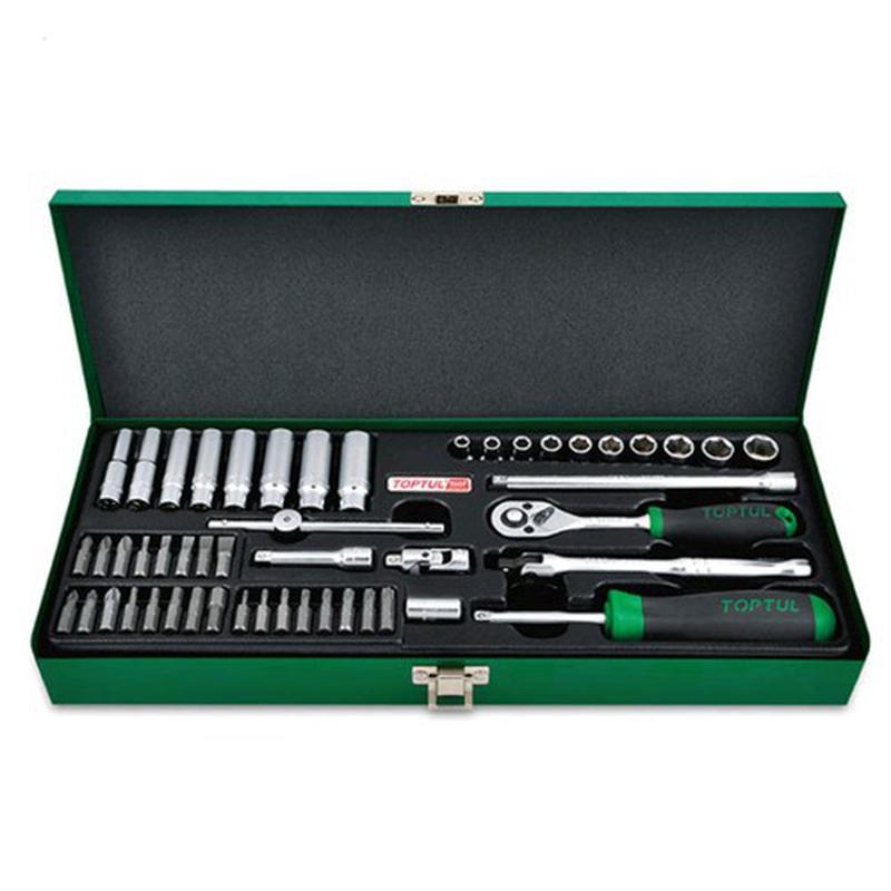 Професійний набір інструменту TOPTUL 1/4" 50ед. GCAD5003. Инструменты удобно расположены внутри кейса, каждый предмет занимает свое место, что обеспечивает комфортное хранение набора. Набор включает в себя: 10 торцевых 6-гранных головок от 5 до 13мм, 8 длинных головок от 6 до 13мм, два удлинителя, держатель бит, кардан, три воротка и трещотку на 36 зубцов. А так же, набор содержит большое количество насадок: три насадки PH, три насадки PZ, пять насадок SL, пять насадок HEX от 3 до 8 мм, и восемь насадок TORX размером от 8 до 40. Все инструменты в наборе –метрические. Присоединительный квадрат 1/4 дюйма. Дана комплектація забезпечує високу функціональність і тому робить набір незамінним помічником для автолюбителя і професіонала. Також є можливість придбання БУДЬ-якого інструменту з набору TOPTUL GCAD5003 окремо. На всі торцеві головки і ключі TOPTUL з набору надається довічна гарантія на заводський брак!