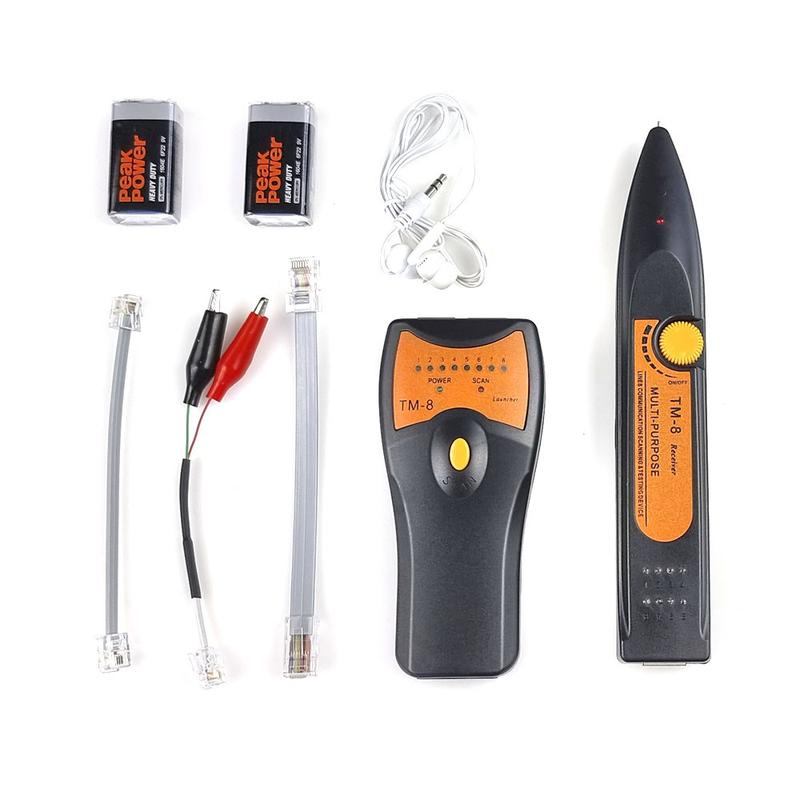 Кабельний тестер з генератором тону WT4063 Пристрій призначений для діагностики витої пари без порушення ізоляції. Також ним можна перевірити уже обтиснутий кабель на цілісність. Для цього на базовій частині є індикатори та порти RJ 45 і RJ 12. На виносній ручці також є відповідні порти та індикатори. Тестером дозволяє перевірити також екранований кабель FTP. Підключивши базову станцію до одного з кінців кабелю, чи одного з портів, ми можемо прослідкувати сигнал за допомогою виносної частини тестера. Для цього на ручці вмикається регулятор і з’являється характерний тонкий звук. Чим ближче до провідника, по якому проходить сигнал від базової станції, ти голоснішим стає звук. Таким чином, можна визначити, в якому напрямку прокладено провідник, якщо він знаходиться в пучку інших кабелів, чи навіть якщо кабель прокладено за гіпсокартонною стіною. Тестер поставляється в зручному чохлі. З ним же поставляються навушники, комплект перехідників, батарейки та інструкція.