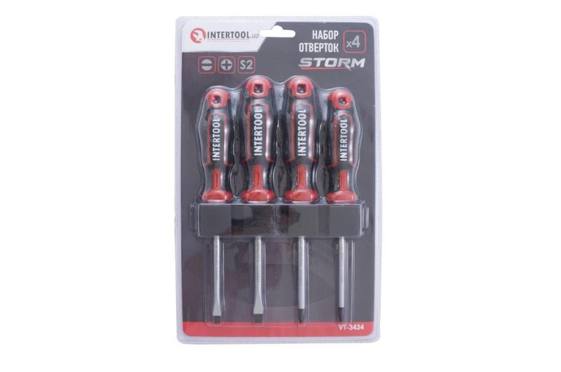 Профессиональный набор отверток STORM изготовлен по последним технологиям и соответствует высоким запросам мастеров. Отвертки предназначены для интенсивной работы на СТО, в мастерских, в точках сервисного обслуживания и в других отраслях, где необходимо проводить постоянные работы с применением высоких нагрузок. Также этот набор станет отличным помощником в домашнем арсенале инструмента и прослужит вам долгие годы! Высокое качество стали Стержень отвертки изготовлен из высокопрочной стали S2, которая считается лучшей в своем сегменте. В составе этой стали присутствуют молибден и кремний, которые придают изделию высокое сопротивление к нагрузкам и низкий порог обратимой деформации. Также сталь S2 обладает высокой антикоррозийной стойкостью. Конструкция отверток продумана до мелочей Стержень глубоко посажен в рукоятку и крепиться в двух местах, что исключает возможность срыва. Намагниченный наконечник Отвертки имеют высокопрочный магнитный наконечник, который позволяет комфортно устанавливать и демонтировать крепеж. Он устойчив к истиранию граней и предназначен для проведения работ с высокой нагрузкой. Удобная рукоятка Форма ручек обеспечивает максимальную эффективность от приложенного усилия. Трехкомпонентная рукоятка изготовлена из термопластичной резины (TRP) и гарантирует комфорт при работе даже влажными или скользкими руками. Легкая, прочная, бензомаслостойкая ручка удобно лежит в ладони во время работы. Яркая маркировка на конце рукоятки позволяет быстро найти необходимый тип и размер отвертки. Комплектация: Отвертки: SL5*100мм, SL6*100мм, PH1*100мм, PH2*100мм Длина отвертки: 100 мм; Количество в наборе: 4 ед.; Материал рукоятки: TPR резина; Материал стержня отвертки: сталь S2