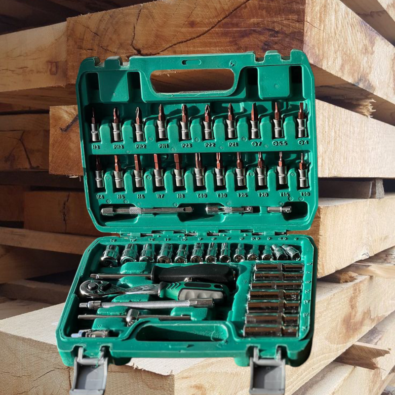 Набор инструментов (53 предмета) – это универсальный комплект для проведения автомобильных, слесарных, бытовых и других ремонтных работ. Все инструменты изготовлены из прочной хромованадиевой стали с никелированным покрытием, что обеспечивает их долговечность и устойчивость к коррозии. Удобная транспортировка и хранение – все инструменты надежно зафиксированы в прочном пластиковом кейсе с замками. Компактный размер и небольшой вес позволяют брать набор с собой в любое место. Набор идеально подходит для: ✔ Автолюбителей ✔ Домашние мастеры ✔ Слесарных работ ✔ Выполнение разнообразных ремонтов