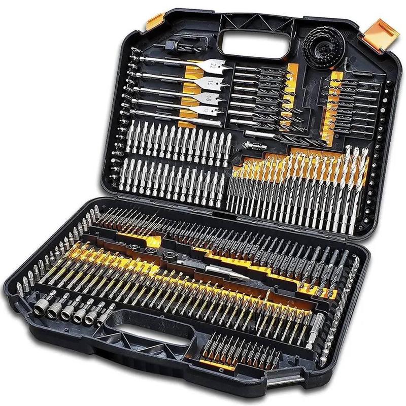 Набір високоякісних інструментів DEMKO LUX відмінно підійде для ремонту, домашнього і професійного використання. Інструменти виготовлені з високоякісного матеріалу HSS з титановим покриттям, яке володіє міцністю і довговічністю. Всі елементи мають продуману конструкцію, що сприяє зручності в експлуатації. Крім різних професійних свердел і приладдя для свердління по дереву, металу, бетону і пластику, в набір входять інструменти для різних забивних і кріпильних робіт. У комплектацію входять свердла HSS - 57 шт, кобальтові свердла HSS - 30 шт, свердла по дереву - 17 шт, оцинковані свердла по бетону - 21 шт, втулки з вуглецевої сталі - 6 шт, плоскі свердла по дереву - 4 шт, 4 упору свердла, подовжувач плоского свердла 150 мм, свердло-раковина, 4 кільцевих пили з вуглецевої сталі, центрувальне свердло, магнітний тримач, 1 пробій, 2 шестигранних ключа, головки CRV25 мм - 66 шт, головки CRV50 мм - 30 шт. Інструменти упаковані в міцний валізу для зручності зберігання, використання та перенесення інструментів. Характеристики: - Матеріал: сталь HSS з титановим покриттям - Кількість у наборі: 246 шт - Свердла HSS з титановим покриттям - 57 шт: 1x6, 1.5x6, 2x6, 2.5x6, 3x6, 3.2x6, 3.5x4, 4x4, 4.5, 4.8, 5x4, 5.5x4, 6, 6.5x2 - Кобальтові свердла HSS - 30 шт: 1x3, 1.5x3, 2x3, 2.5x3, 3x4, 3.2x3, 3.5x3, 4x4, 5.5x2, 6x2 - Свердла по дереву - 17 шт: 3 mm x 4; 4 mm x 4; 5 mm x 3; 6 mm x 2; 7 mm x 1; 8 mm x 2; 10 mm x 1 - Свердла по бетону оцинковані - 21 шт: 3x2, 4x2, 4.5x2, 5x2, 5.5x2, 6x3, 6.5x2, 7x3, 8, 9, 10 - Плоскі свердла по дереву - 4 шт: 33/64,5/8,3/4,55/64 - Втулки з вуглецевої сталі - 6 шт: 1/4,9/32,5/16,11/32,25/64,7/16 - Головки CRV25 мм - 66 шт: (-)3x2, 4x2, 5x2, 6x2, 7x2; (+)PH0x2; PH1x3, PH2x4, PH3x3; (*)PZ0x2, PZ1x3, PZ2x4, PZ3x3, T10, T15, T20, 725, T27, T30, T35, T40; HEX: 5/64, 3/32, 1/8, 5/32, 3/16, 1/4, 2, 2.5, 3,4,5,6; (⬥)S0*2-S1*3-S2*4-S3*3 - Головки CRV50 мм - 30 шт: (-)3, 4, 5, 6; (+)PH0, PH1x2, PH2x3, PH3x2; T15, T20, T25, T30; (*)PZ0, PZ1x2, PZ2x3, PZ3x2; HEX: 2, 2.5, 3, 4, 5, 6 - 4 кільцевих пили з вуглецевої сталі: 32 mm, 38 mm, 45 mm, 54 mm - Магнітний тримач: 60 mm - 4 упору свердла: 3, 5, 6, 8 mm - Подовжувач плоского свердла: 150 мм Комплектація: - Свердла HSS - 57 шт - Кобальтові свердла HSS - 30 шт - Сверла по дереву - 17 шт - Оцинкованные сверла по бетону - 21 шт - Втулки из углеродистой стали - 6 шт - Плоские сверла по дереву - 4 шт - Упоры сверла - 4 шт - Удлинитель плоского сверла - Сверло-раковина - Кольцевые пилы из углеродистой стали - 4 шт - Центрирующее сверло - Магнитный держатель - Пробой - Шестигранные ключи - 2 шт - Головки CRV25 мм - 66 шт - Головки CRV50 мм - 30 шт - Чемодан
