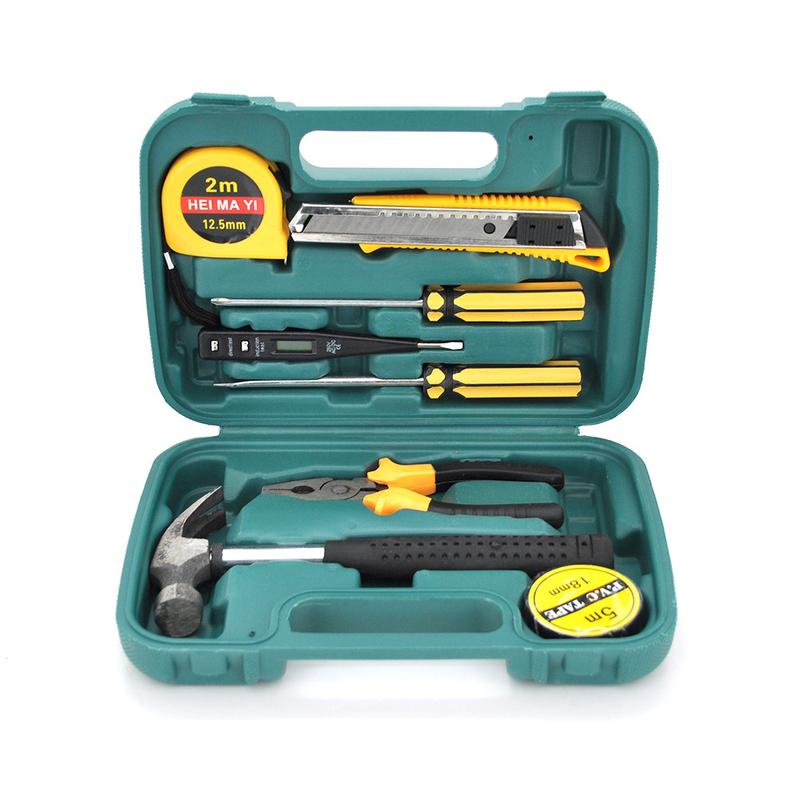 Набор инструментов произведён специально для ремонта и строительства и станет незаменимой вещью в доме каждого хозяина. Набор упакован в прочный кейс, изготовленный из жесткого противоударного пластика. Его компактность и небольшой вес, позволяют взять его с собой в дорогу, положить в багажник автомобиля не переживая, что он займет много места. Забить гвоздь или закрутить болт? Без проблем! Ведь в наборе есть много нужных вещей. Комплектация набора: 1 шт. — Изолента(5 м) 1 шт. — Индикаторная отвертка с цифровым дисплеем 1 шт. — Плоскогубцы 1 шт. — Нож канцелярский 1 шт. — Молоток столярный 1 шт. — Рулетка ( 2 м) 1 шт. — Отвертка крестовая 1 шт. — Отвертка плоская 1 шт. -- Пластиковый чемоданчик