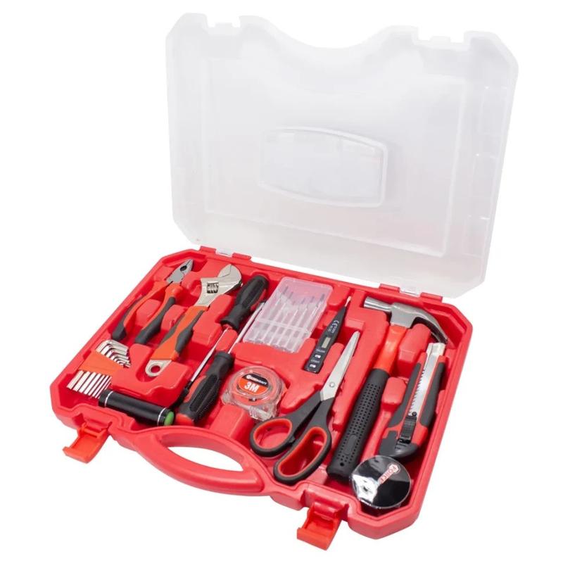 FORCEKRAFT FK-1026P: Универсальный набор инструментов из 26 предметов для дома и профессионалов Представляем вашему вниманию набор инструментов FORCEKRAFT FK-1026P, который станет вашим надежным помощником в решении самых разнообразных задач. Этот комплект из 26 предметов включает в себя все необходимое для слесарно-монтажных работ, от мелкого ремонта по дому до профессионального обслуживания техники. Преимущества и особенности: Широкий спектр применения: Набор включает в себя инструменты для выполнения различных видов работ, от закручивания/откручивания крепежа до резки материалов и проведения измерений. Высокое качество: Все инструменты изготовлены из инструментальной стали и прошли закалку, что обеспечивает им прочность, долговечность и устойчивость к нагрузкам. Удобство использования: Инструменты оснащены двухкомпонентными рукоятками, которые обеспечивают комфортный и надежный захват, предотвращая проскальзывание руки. Безопасность: Длинногубцы и пассатижи оснащены ограничительными упорами, которые предотвращают соскальзывание руки и обеспечивают безопасность при работе. Практичность: Нож с сегментированным лезвием обеспечивает долгий срок службы, а затупившиеся сегменты легко отламываются, обеспечивая всегда острое лезвие. Удобство хранения и транспортировки: Все инструменты поставляются в прочном пластиковом кейсе, который обеспечивает удобное хранение и транспортировку набора. Дополнительные функции: Рулетка оснащена ремешком для фиксации на запястье, что обеспечивает удобство при проведении измерений. Комплектация: Пластиковый кейс Шарнирно-губцевый инструмент Г-образные шестигранные ключи Разводной ключ Отвертки Молоток Рулетка, 3 м Нож с сегментированным лезвием Ножницы Фонарик Область применения: Набор инструментов FORCEKRAFT FK-1026P будет полезен как для домашних мастеров, так и для профессионалов, занимающихся ремонтом и обслуживанием техники. Он идеально подходит для: Мелкого бытового ремонта. Ремонта автомобилей и мотоциклов. Слесарных и монтажных работ. Строительных работ. Преимущества использования: Универсальность: Набор включает в себя все необходимое для выполнения различных видов работ. Надежность: Инструменты изготовлены из качественных материалов и рассчитаны на длительный срок службы. Удобство: Инструменты оснащены удобными рукоятками и поставляются в практичном кейсе. Безопасность: Инструменты соответствуют требованиям безопасности и обеспечивают защиту при работе. Набор инструментов FORCEKRAFT FK-1026P – это отличный выбор для тех, кто ценит качество, удобство и универсальность!