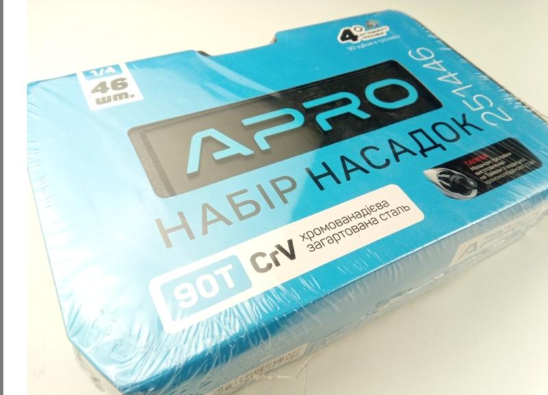 Набор инструментов APRO (251446) 90Т/трещотка? + 46 насадок Насадки торцевые: 4, 4.5, 5, 5.5, 6, 7, 8, 9, 10, 11, 12, 13, 14 мм Продлители: - гибкий удлинитель 150 мм; - удлинитель 50 мм, - удлинитель 100 мм Биты: - HEX 3, HEX 4, HEX 5, HEX 6, HEX 7, HEX 8, - TX 10, TX 15, TX 25, TX 25, TX 40, PH 1, PH 2, PH 3, - PZ 1, PZ 2, PZ 3, - FD 4, FD 5.5, - FD7 Шарнир карданный: 1/2" Держатель: 115мм Шестигранный переходник: 30мм Отверточный вороток: 150м Ключ шестигранные: 1.27, 1.5, 2, 2.5 Материал: CrV-облайдий) Количество в ящике: 10 шт