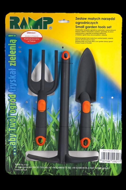 Набор садовых инструментов RAMP универсальный помошник в вашем саду. В набор входит: Садовый совок узкий; Садовые малые вилы; Посадочная садовая тяпка универсальная. Набор инструментов предназначен для рыхления, аэрации почвы, прополки, высадки и пересадки рассады, цветов на небольших грядках или клумбах. Удобная литая рукоять инструментов облегчит процес работы. Изготовлены из высококачественого пластика, легко очистить. Продукция RAMP присутствует на Европейском рынке уже более 35 лет. Компания предлагает современные профессиональные садовые инструменты для эффективного ухода за вашим садом. Обращает на себя внимание универсальность предложения, включающего различные виды садовых инструментов, в том числе секаторы, лопаты, грабли, пилы и инвентарь для уборки в саду и дома.